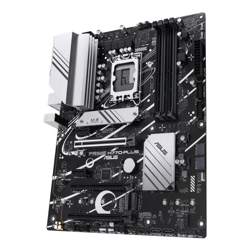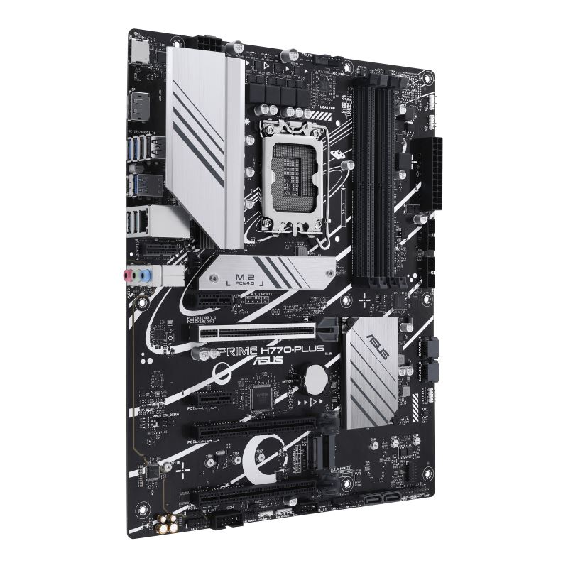 ASUS Prime H770-PLUS, an Intel H770 LGA 1700 ATX motherboard with PCIe 5.0, three PCIe 4.0 M.2 slots, DDR5, Realtek 2.5Gb Ethernet, DisplayPort, HDMI™, USB 3.2 Gen 2 Type-C, Thunderbolt™ (USB4) support, Aura Sync