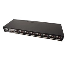 Přepínač pro ovládání 8 počítačů s DVI-I dual link porty (klávesnice, video, myš, audio) z jednoho stanoviště, s možností připojení dalších USB zařízení přes integrovaný USB hub. DVI podporuje i připojení analogového signálu.