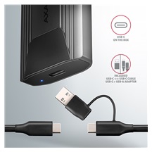 Univerzální externí AXAGON EEM2-GTS2 THIN SCREWLESS box s USB 10Gbps rozhraním určený pro M.2 NVMe nebo SATA SSD disky. Spolehlivé připojení umožňuje oboustranný USB-C konektor na boxu. V balení naleznete nejen kabel USB-C -> USB-C pro připojení boxu k počítači, ale také USB-C -> USB-A redukci. Můžete tak box připojit k jakémukoliv volnému USB portu na notebooku. Díky USB 3.2 Gen 2 rozhraní je přenosová rychlost až 10 Gb/s. Externí M.2 box podporuje i další moderní funkce např. UASP, TRIM a umožňuje čtení S.M.A.R.T. informací monitorujících stav disku. Podpora úsporného režimu při nečinnosti. Unikátní vlastností, díky použitému čipsetu, je možnost použití jak M.2 NVMe tak i SATA disků. Nemusíte tak přemýšlet jaký typ M.2 disku do boxu vložíte. Výhodou je uchycení rovnou pro čtyři různé délky SSD karet – 30, 42, 60 a 80 mm. M.2 karty mohou být jednostranné nebo oboustranné. Box nemá omezení kapacity vloženého SSD disku. Bezšroubkové otevírání boxu usnadňuje montáž i demontáž M.2 SSD disku. Výměna disků je rychlá a snadná a rozšiřuje tak možnosti využití boxu např. pro migraci dat, testování atd. Vnější kovový plášť je proveden v šedé barvě s elegantním povrchem, který brání nežádoucím otiskům prstů. Hliníkové tělo boxu a teplovodivá podložka zajistí velmi dobré chlazení vloženého M.2 SSD disku. Prodlužuje se tak jeho životnost a také je zamezeno zpomalování rychlosti disku tzv. „Thermal Throttling“. Vložením M.2 SSD disku do tohoto boxu snadno vytvoříte rychlý, kompaktní a univerzální externí disk. Box je možné použít jak s počítači a notebooky, tak s mobilními telefony a tablety. Vstup: • USB 10Gbps (USB 3.2 Gen 2), konektor USB-C female male. • Kompatibilní s USB 3.2 Gen 1, USB4 a Thunderbolt 3/4. Podpora zařízení: • NVMe M.2 SSD disky, • SATA M.2 SSD disky, • určeno pro karty formátu M key nebo B+M key, • NGFF 75-pinový M key slot pro M.2 disky. Další vlastnosti: • Podpora přenosových rychlostí 10.000 / 5.000 / 480 Mbit/s. • Podpora M key nebo B+M key NVMe (PCI-Express) i SATA (AHCI) M.2 SSD disků bez omezení maximální kapacity. • Podpora M.2 disků rozměrů – 2230, 2242, 2260, 2280 mm. • Podpora jednostranných i oboustranných M.2 SSD disků. • Vyhovuje PCI Express Base Specification Revision 3.1a specifikaci. • Vyhovuje NVM Express 1.3 specifikaci. • Vyhovuje Serial ATA 3.2 specifikaci (SATA/600), přenosové rychlosti až 6 Gb/s (600 MB/s). • Vyhovuje USB Mass Storage Class specifikaci. • Celková propustnost / přenosová rychlost adaptéru je dána použitým USB rozhraním (teoreticky až 10 Gbit/s). • Reálná propustnost / přenosová rychlost adaptéru kolem 1000 MB/s (1 GB/s) je dána limity USB 3.2 Gen 2 rozhraní. • Podpora BOT (Bulk-Only Transport). • Podpora UASP (USB Attached SCSI) pro rychlejší přenos dat ve Windows 8 a novějších. • Podpora funkce TRIM pro omezení pozvolné degradace výkonu SSD v čase. • Podpora S.M.A.R.T. (Self-Monitoring, Analysis, and Reporting Technology) systém monitorující stav disku. • Podpora bootování z SSD v externím boxu. • Možnost připojení zařízení za chodu díky podpoře Hot Plug. • Plná podpora Plug and Play. • Podpora úsporného režimu - usínání disku po 5 minutách nečinnosti. • Napájení po USB sběrnici až 900mA z jednoho USB portu zcela dostačuje ve všech případech. • Decentní modrá LED dioda indikující připojení k USB portu počítače (trvalým svitem) a přenos dat (blikáním). • Hliníkové odolné tělo a teplovodivá podložka napomáhají lepšímu chlazení M.2 SSD disku. • Vyšší povrchová teplota boxu není závadou - díky hliníkovému tělu je teplo generované provozem disku lépe odváděno a předáváno do okolí. • Připojení přes USB 3.2 Gen 2 type C female konektor. • Kabel USB type C male / USB type C male, délky 50 cm a redukce USB type C female / USB type A male, jsou součástí balení. Další údaje: • Rozměry boxu 112 x 40 x 14 mm. • Hmotnost boxu 48 g (bez kabelu a M.2 disku). Podporované operační systémy: • Windows 7 / 8.1 / 10 / 11 a novější, macOS, iPadOS, iOS, Linux, Chrome OS a Android. • Kompatibilita je závislá na aktualizovaném operačním systému a podpoře od výrobce zařízení. • Pozn.: Při použití s Windows 7 je nutné ověřit u výrobce M.2 SSD disku podporu tohoto OS a dostupnost ovladače. Balení v kartonové krabičce s otvorem pro zavěšení obsahuje: • USB-C 10Gbps externí box pro M.2 SSD, • USB-C - USB-C kabel délky 50 cm s USB-C - USB-A redukcí, • 1ks teplovodivé podložky, • vícejazyčný návod CZ/DE/DK/ENG/ESP/FIN/FR/GR/HR/HU/IT/NL/PL/PT/RO/SK/SWE/TR/UA/BG/CN/ARA.