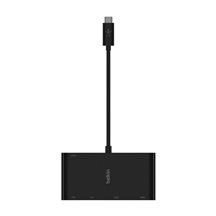 USB-C Multimedia + Charge Adapter (100W) Sledujte a nabíjejte se s multimediálním adaptérem, který umožňuje průchozí napájení až 100 W. Pětiportový adaptér podporuje gigabitový Ethernet, USB-A 3.0, VGA, 4K HDMI a přenos dat přes USB-C, takže je ideálním nástrojem na schůzích, v posluchárnách, učebnách nebo na cestách. Tato jednoduchá technologie plug-and-play je kompatibilní s notebooky Mac i Windows a zařízeními s USB-C. *Víceportový adaptér s porty USB-A 3.0, VGA a 4K HDMI *Připojení k portu USB-C vašeho zařízení *USB-C Power Delivery s výkonem až 100 W *Dvouletá záruka