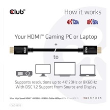 Club CAC-1370 3D Ultra High Speed HDMI™2.1 Certifikovaný kábel je skonštruovaný tak, aby zvládol najvyššiu kvalitu video- a audio- signálov.