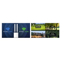 Tento venkovní Access Point disponuje 10/100 Mbps LAN portem s podporou pasivního 24 V PoE napájení a dvěma odnímatelnými anténami. Dual-Band Wi-Fi 5 dosahuje rychlosti 300 Mbps v 2.4 GHz pásmu, 866 Mbps v 5 GHz a podporuje technologie jako MU-MIMO, *Band Steering a Beamforming.