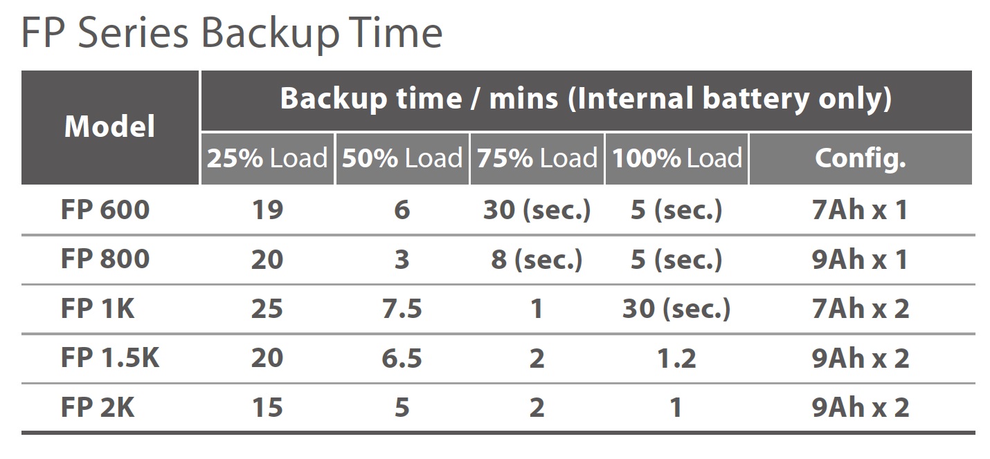 UPS zdroj slouží jako záložní baterie, která udrží počítače, servery a jinou IT techniku v chodu při výpadku elektrického proudu. Přednosti tohoto modelu jsou především jeho kompaktní rozměry, vysoká spolehlivost zaručená kvalitním mikroprocesorem, odolnost vůči automatickému vypnutí, nabíjení i v off-režimu a funkce studeného startu. FP série UPS FSP/Fortron nemá možnost komunikace s PC (není obsažen USB ani RS-232 komunikační port). V případě požadavku na komunikační port použijte UPS z řady EP série. Hlavní vlastnosti: * Kompaktní velikost * Vynikající mikroprocesorové řízení zaručuje vysokou spolehlivost * Stabilizace napětí (boost and buck AVR) * Simulovaná sinusová křivka * Dobíjení i ve vypnutém stavu * Funkce studeného startu (bez připojení do elektrické sítě) * Retailové balení v krabici * Záruka 2 roky na UPS i baterii VÝSTUP Kapacita výstupního výkonu [W]: 600 Kapacita výstupního výkonu [VA]: 1000 Výstupní napětí [V]: 220 Topologie: Line-interactive Typ křivky: Simulovaná sinusoida Výstupní přípojky: 4x Schuko VSTUP Vstupní napětí [V]: 220 / 230 / 240 Kmitočet na vstupu [Hz]: 50/60 Rozsah vstupního napětí [VAC]: 81-145 / 162-290 BATERIE A DOBA BĚHU Typ baterie: 12V / 7 Ah Předinstalované baterie: 2 Obvyklá doba nabíjení [Hod]: 4-6 Záložní čas: 20 min. KOMUNIKACE A SPRÁVA Port rozhraní: Ne Indikátory: LED světlo Zvukové upozornění: Ano FYZICKÉ Maximální výška [cm]: 18,2 Maximální šířka [cm]: 13 Maximální hloubka [cm]: 32 Čistá hmotnost [kg]: 8,2 Barva: Černá Provozní teplota [°C]: 0 - 40 Hlučnost [dB]: méně než 40 Obsah balení: Jednotka UPS včetně instalované baterie, Uživatelská příručka UPS selector: -> Tools -> UPS Selector Odkaz na stránky výrobce: Poznámka: Pro HP servery z nových řad G6, G7 a G8 je potřeba zvolit on-line UPS FSP/Fortron řady Champ, které poskytují čistý sinusoidní výstup.
