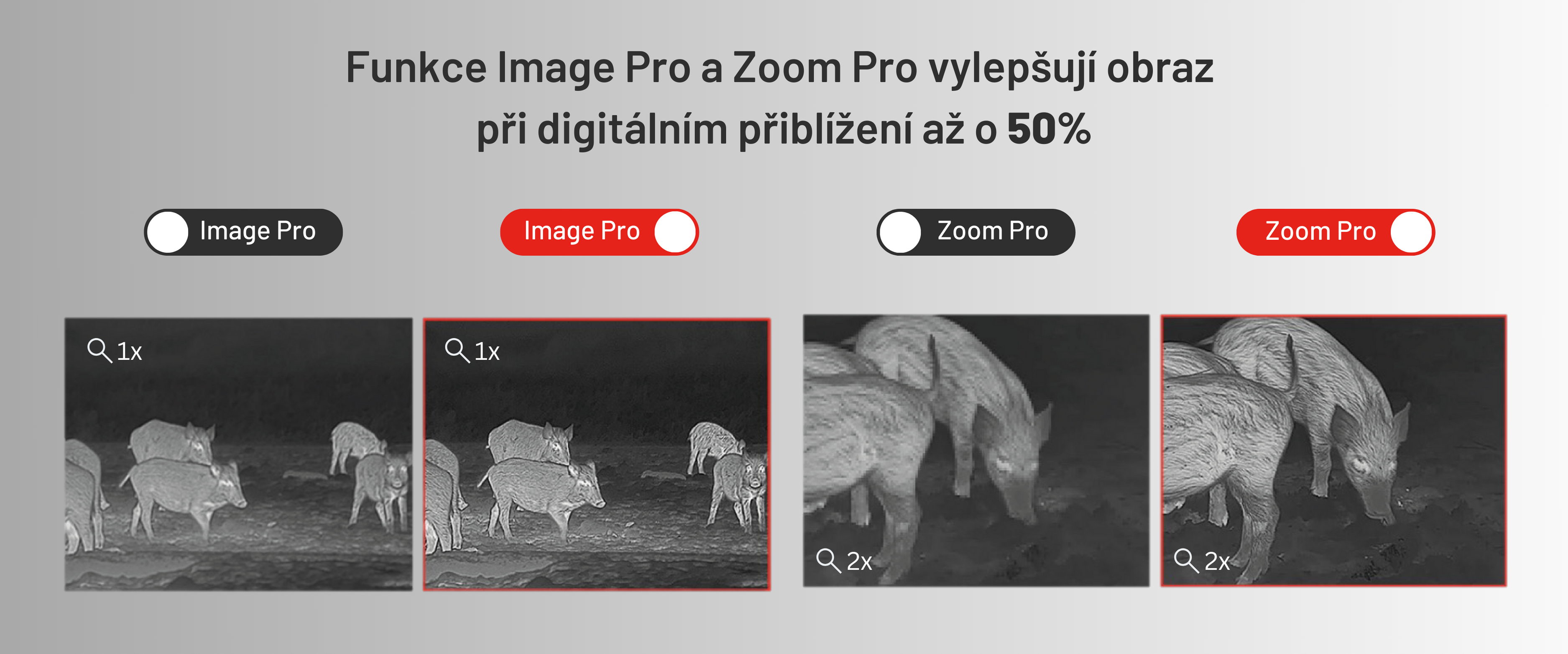 Pro ještě kvalitnější obraz přicházejí funkce Image Pro a Zoom Pro, které až o 50% vylepšují obraz při digitálním přiblížení. Pokročilé technologie zpracování obrazu přináší čistší a detailnější obraz vykreslený na displeji OLED s rozlišením 1024 × 768 px.