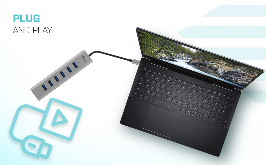 • Nabíjecí HUB USB-C až pro 7 zařízení • Kompatibilní se všemi notebooky nebo tablety s porty USB-C, USB4 nebo Thunderbolt • Kovové tělo nabízí maximální odolnost a ochranu • Díky malým rozměrům se HUB snadno přenáší i v kapse • 7x USB 3.0 portů nabízí možnost připojení různých periferií i rychlého HDD/SSD nebo flash disku pro rychlý přenos dat • Rychlost nabíjení až 7,5 W na port • Přídavný port USB-C pro nabíjení portů HUB s výkonem až 15 W (adaptér není součástí dodávky) • HUB podporuje všechny běžné současné operační systémy (Windows, macOS, Linux, Android, Chrome OS, iPadOS) Popis USB-C, USB4 a ThunderboltTM 3 či 4 jsou na dnešních noteboocích a tabletech čím dál populárnější. Společně s jejich čím dál širším využívání ubývá na těle notebooků množství USB portů. A pokud potřebujete připojit ke svému zařízení příslušenství, na které již dostatek portů nemáte, můžete využít tohoto malého, ale šikovného rozbočovače, který navíc podporuje aktivní nabíjení. S tímto hubem získáte dalších 7 USB 3.0 portů (až 5 Gbps). Připojte si externí klávesnici a myš, přenášejte data nebo filmy z USB flash disku rychlostí až 5 Gbps nebo nabíjejte svá mobilní zařízení nabíjejte, až rychlostí 7.5W. Hub nevyžaduje instalaci ovladačů, pouze jej pomocí USB-C kabelu připojíte a můžete jej ihned začít využívat. Hub má vestavěnou přepěťovou ochranu vašeho počítače pro případ zkratu na periferních zařízeních. Díky kompaktním rozměrům a nízké hmotnosti jej můžete mít v brašně stále sebou – kovový povrch ostatně chrání hub před poškozením a před poškrábáním. Hub podporuje nabíjení, a to prostřednictvím externího USB-C adaptéru až 15W (5V, 3A)* * Adaptér není součástí balení. Specifikace • 1x integrovaný USB-C kabel pro připojení k zařízení (30 cm) • 1x USB-C port k připojení přídavného napájení hubu až 15W (5V 3A) • 7x USB-A 3.2 Gen 1 s podporou rychlého nabíjení BC 1.2 (až 7.5W na port) • LED indikace napájení HUBU • OS: Windows 10/11, macOS, Android, Chrome OS, iPadOS a Linux s nejnovějšími aktualizacemi • Rozměry produktu: 157 x 30 x 21 mm • Hmotnost produktu: 90 g • Rozměry balení: 180 x 100 x 27 mm Hardwarové požadavky: • Zařízení s volným USB-C, USB4 nebo Thunderbolt™ 3/4 portem Operační systém: • OS: Windows 10/11, macOS, Android, Chrome OS, iPadOS a Linux s nejnovějšími aktualizacemi Obsah balení • Produkt • Manuál