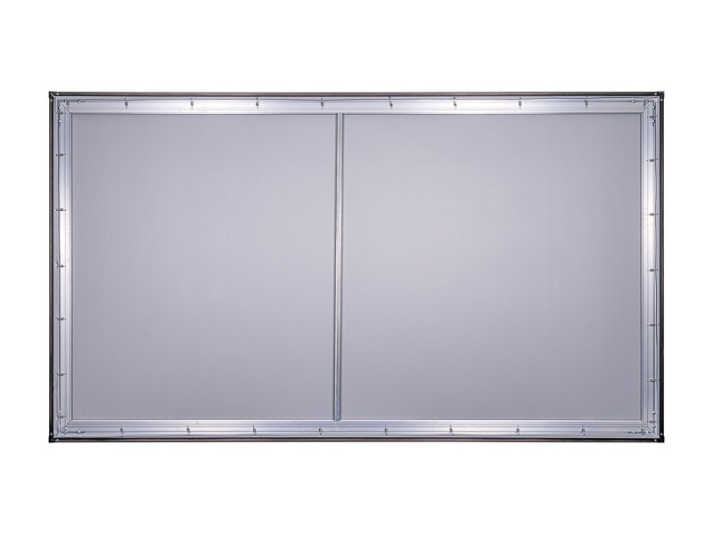 Rám plátna je potažen černým semišem pro pohlcení okolního světla a vyniknutí barev projekce.