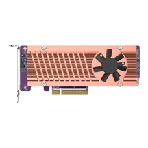 QM2-2P-384A Přidejte do počítače, serveru nebo NAS dva disky M.2 NVMe SSD pomocí rozšiřující karty PCIe 3.0 Funkce Pomocí QM2-2P-384A přidejte do svého počítače nebo QNAP NAS disky NVMe SSD a zvyšte úložnou kapacitu a výkon. *PCIe Gen 3 x8 poskytuje počítači přenosovou rychlost až 64 Gb/s. *Nejsou potřeba žádné ovladače ani další software. *Podporuje systémy Windows a Linux *Udržuje disky SSD v chladu a zachovává vysoký výkon. *Snadná instalace disků M.2 SSD do počítače pomocí bezšroubového a snadno použitelného způsobu uzamčení. *Sledování stavu a teplot disků M.2 SSD v reálném čase SPECIFIKACE Konektor *2 x sloty M.2 22110 nebo 2280 PCIe (Gen3 x4) NVMe SSD PCIe a kanály *PCIe Gen3 x8 Držák *Nízkoprofilový (výchozí). Součástí dodávky je také nízkoprofilový plochý držák a držák s úplnou výškou. Rozměry (D x Š x V) *170,5 × 68,9 × 19,3 mm