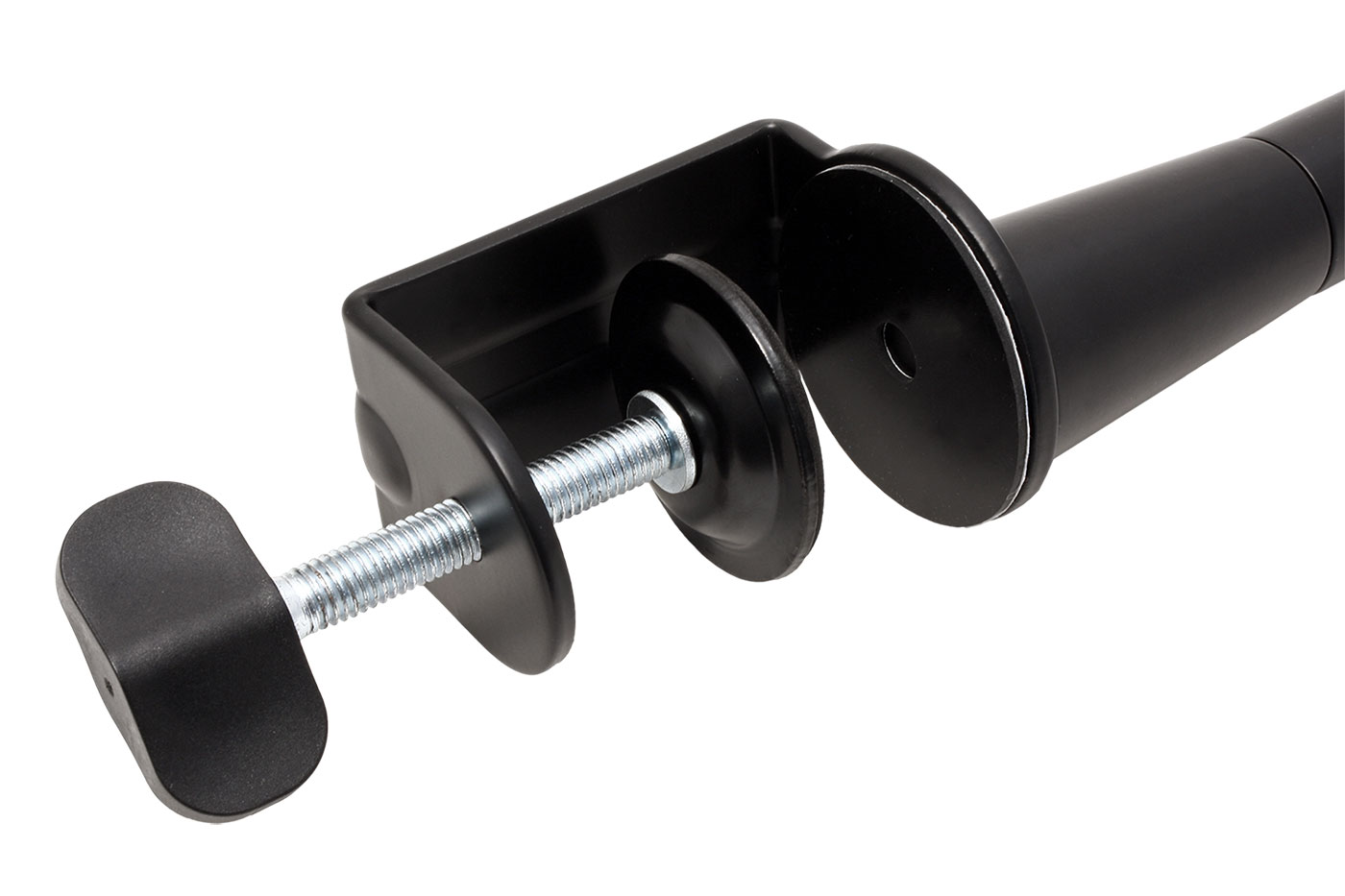 | Vlastnosti | - plynulé a snadné nastavení a polohování mikrofonu - montáž na kraj stolu, nebo do otvoru ve stole - masivní konstrukce unese i těžší mikrofony - univerzální adaptér (2 průměry závitů) pro upevnění většiny mikrofonů - integrovavé průchody pro kabel s plastovýmo krytkami |