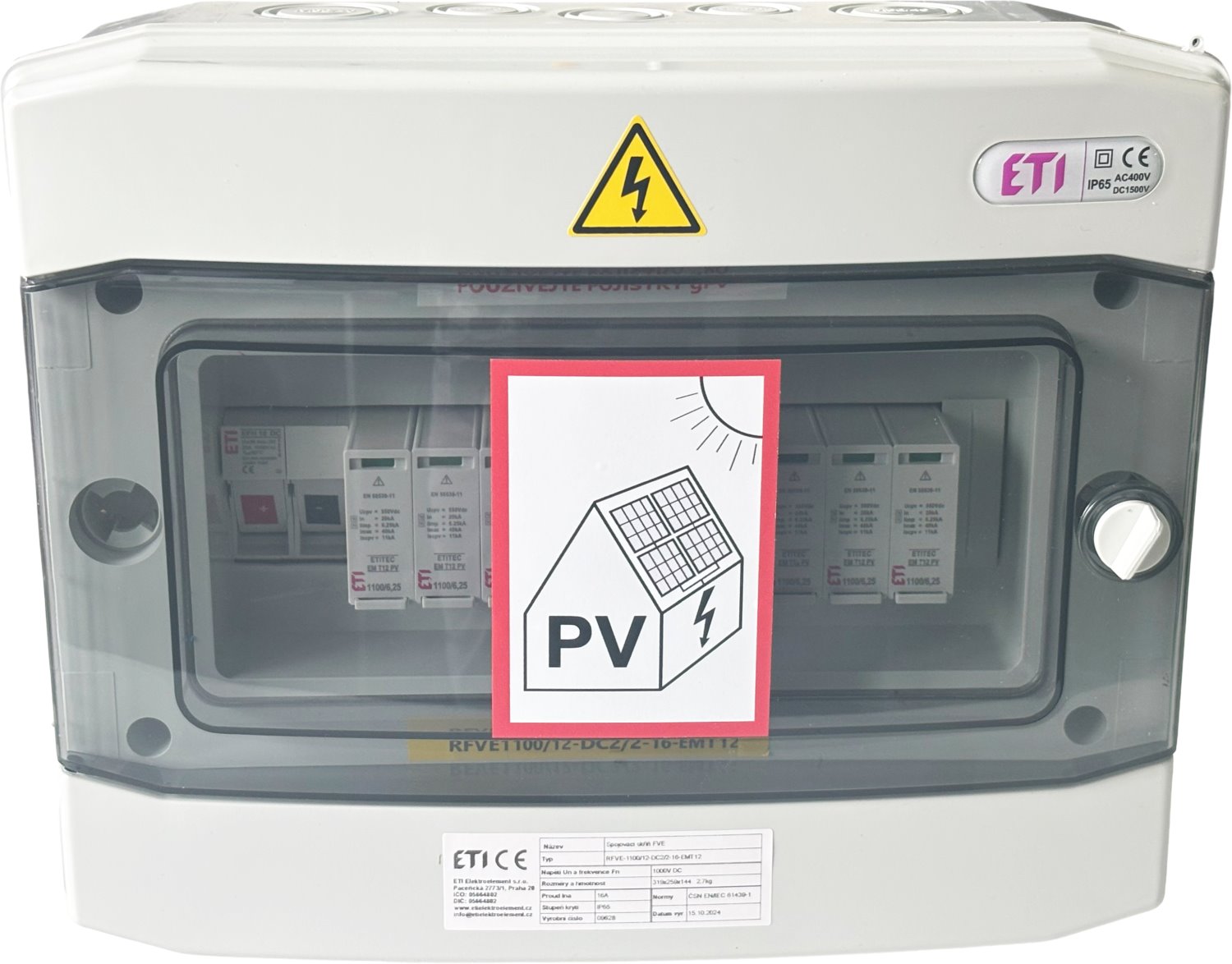 Elektrický rozvaděč pro FVE, 2 stringy, 2 svodiče, 1000V DC Kompletní nástěnná rozvodnice třídy 1+2, maximální napětí 1000 V určená pro povrchovou montáž a instalaci 2 stringů včetně certifikovace pro využití v rámci fotovoltaického systému. Je vybavena 2 svodiči Kód: 141854, Part Number: RFVE1100/12-DC2/2-16-EMT12, ID: 43794 Dostupnost: Skladem 2 ks Cena za ks: Cena bez DPH: 6 927 Kč bez DPH Cena s DPH: 8 381 Kč s DPH Množství: ks Vložit do košíku Porovnat