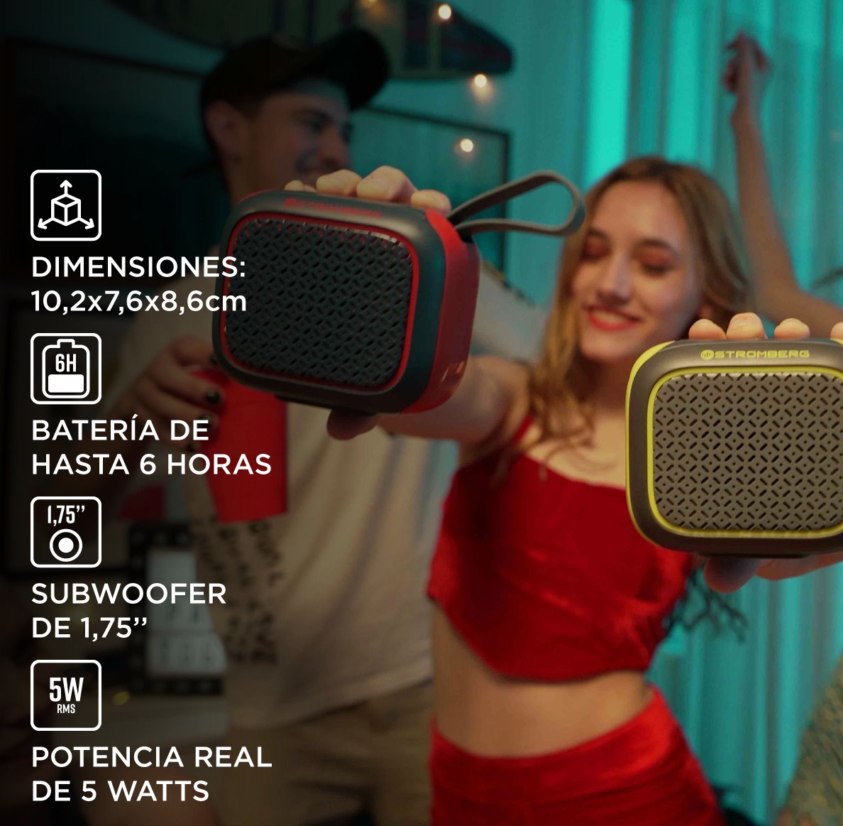 Malý cestovní Bluetooth reproduktor s výkonem 5 W a kompaktním provedením nabízí skvělý zvuk kdekoliv na vašich cestách. Díky dlouhé výdrži až 6 hodin je ideální pro výlety nebo odpočinek venku. Spojení dvou zařízení pomocí Stromberg Connect vytvoří pohlcující stereo efekt, který umocní každou událost. Stylové barevné varianty šedá/žlutá nebo modrá/červená doplňuje nadčasový design, který se hodí ke každému stylu.