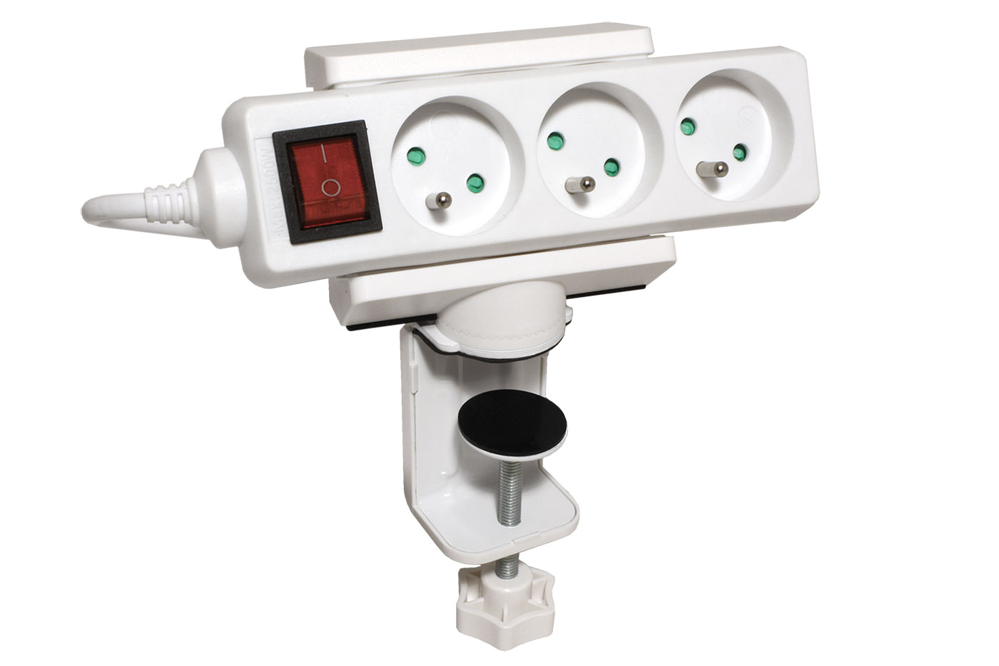 Držák vícenásobné zásuvky (psa) na stůl. S možností otočeníPro snadné a rychlé uchycení zásuvky na stůl. Držák se upevňuje ke stolní desce šroubovací svorkou. Zásuvka do držáku se upevňuje jednoduchým zasunutím do pružného úchytu....
