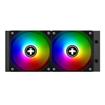 | Použití | Výkonný chladič procesoru s vodním okruhem. Je určen pro procesory Intel patice LGA 2066/2011/1851/1700/1200/1156/1155/1151/1150 a AMD AM4/AM5. Dodává se sestavený, naplněný a (po osazení ventilátorů na výměník) přichystaný k okamžité montáži. ARGB osvětlení pro dokonalé světelné efekty. |