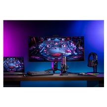 Profesionální kardioidní kondenzátorový herní mikrofon je vybaven 25mm kondenzátorovou kapslí studiové kvality, vzorkovací frekvencí 192 kHz / 24 bitů, vysokopropustným filtrem, vestavěným pop filtrem, prémiovým kovovým držákem pro nárazy a osvětlením ASUS Aura Sync RGB.