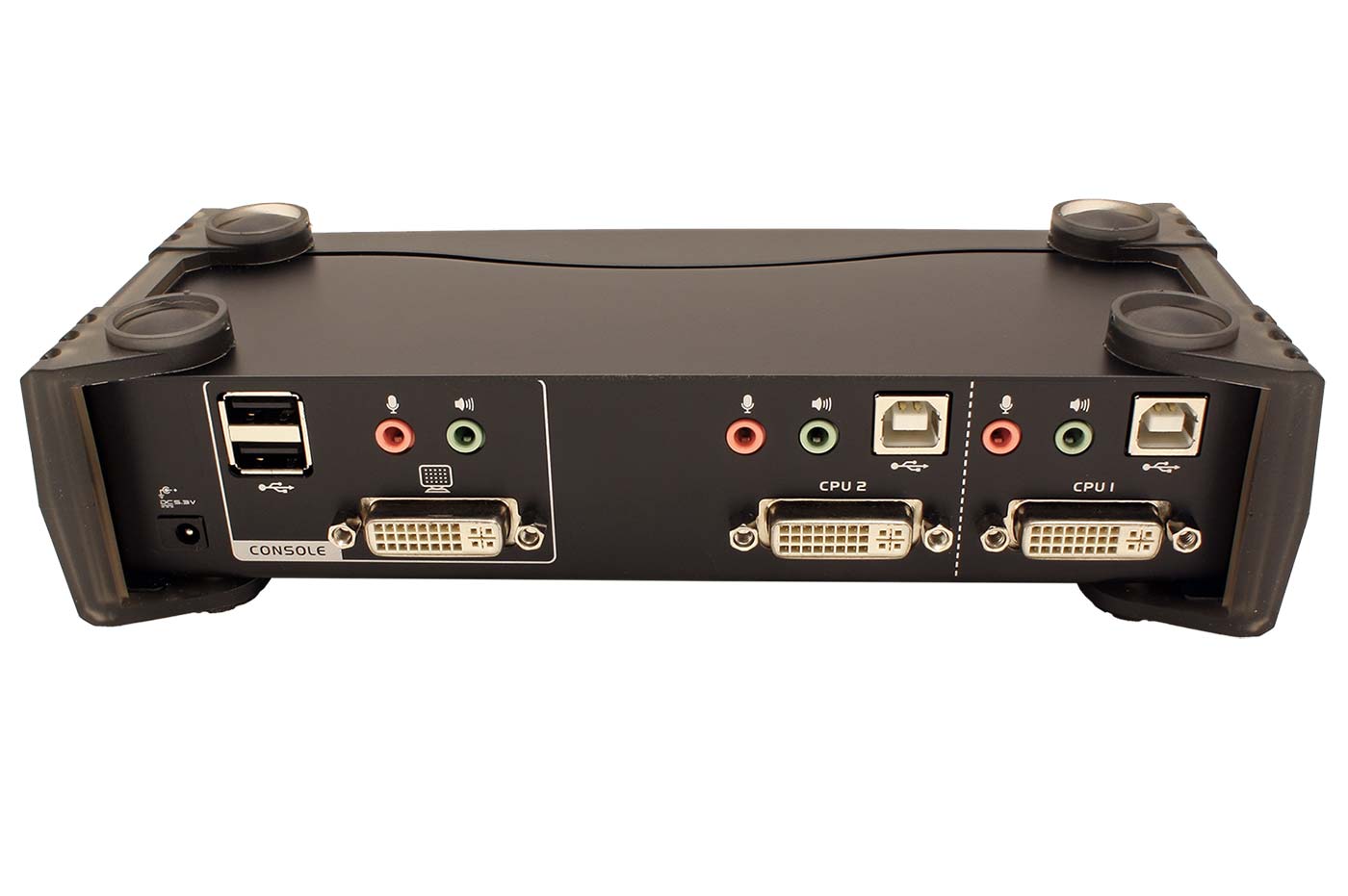 | Konektory | PC klávesnice a myš: 2x USB B(F) PC video: 2x DVI-I(F)dual PC audio: 4x stereo jack3,5F konzole klávesnice a myš: 2x USB A(F) konzole video: DVI-I(F)dual výstup hub: 2x USB A(F) napájení: DC jack4x1,7F |