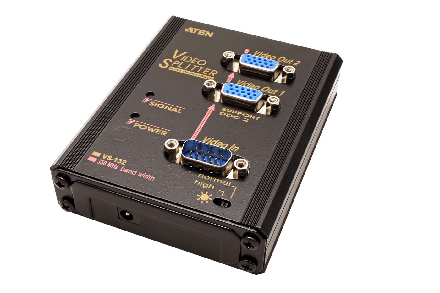 Rozbočovač videosignálu do 2 výstupů.Tento rozbočovač umožňuje připojení 2 zobrazovacích zařízení k jednomu zdroji VGA signálu. Při zapojení za sebou je možno ve 3 úrovních zapojit až 8 monitorů....