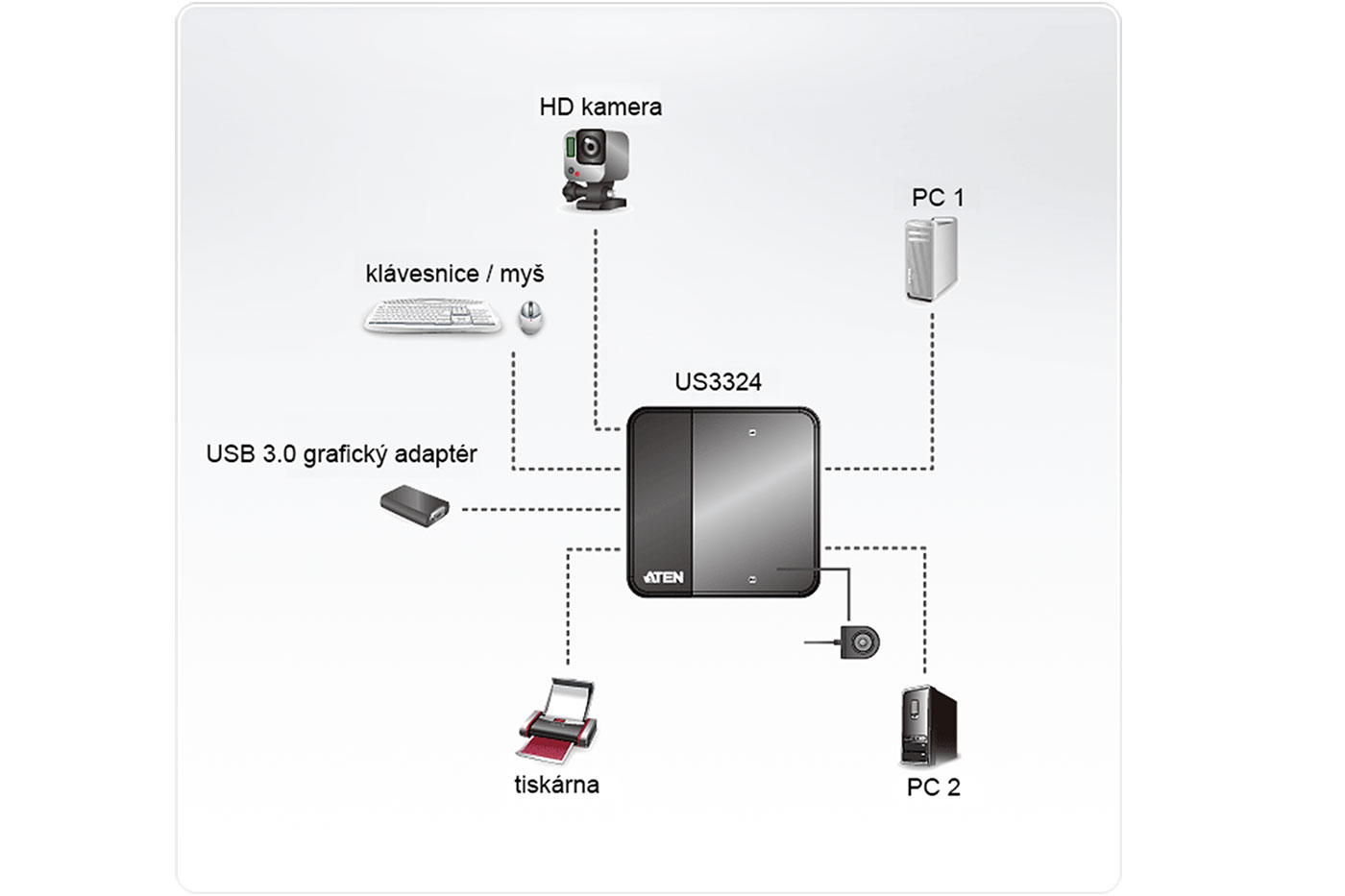 Aten USB 5Gbps přepínač 2:4 (US3324)