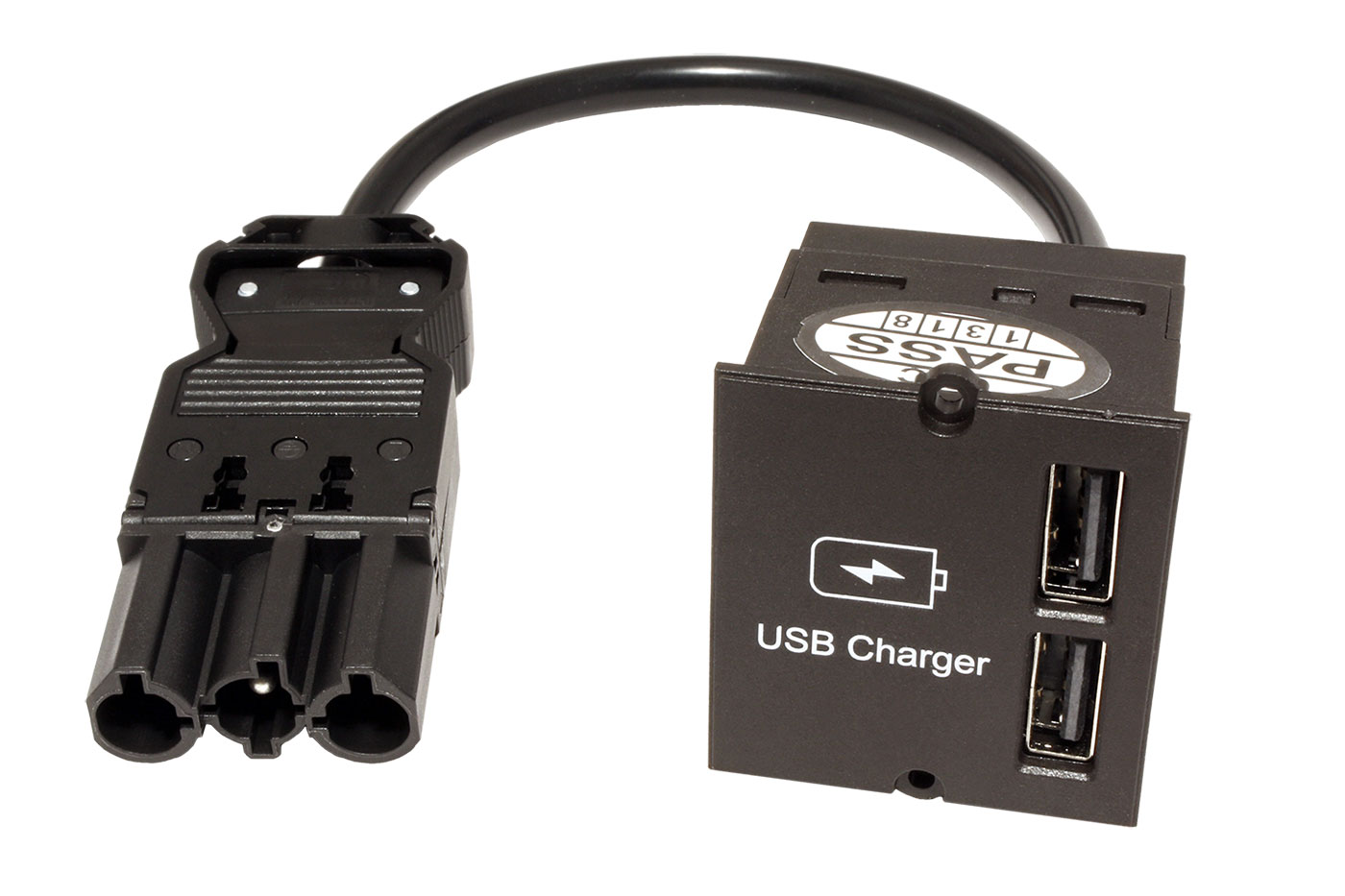 Modul 37 x 40mm - napájecí zdroj USB.Pro začlenění napájecího zdroje (2x USB konektor) do modulárního systému 37 x 40mm....
