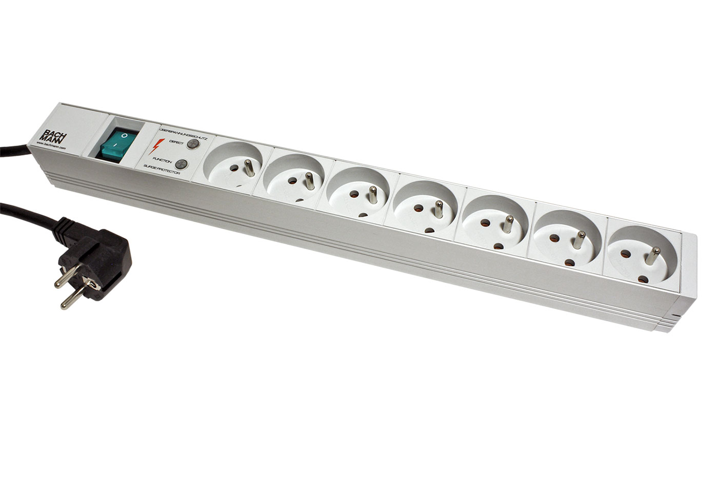 BACHMANN Napájecí panel 1U, 7x zásuvka CZ, přepěťová ochrana, vypínač, šedý, 2m (333.838)