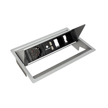 | Použití | Elegantní, výklopné přípojné místo v úrovni stolu. Umožňuje snadnou montáž do otvoru v desce stolu. Box s jednou zásuvkou, USB nabíječkou a uživatelsky konfigurovatelnými moduly. Po zapojení je možno držák sklopit a přípojné místo tak nevyčnívá nad úroveň stolu. Nízká vestavná hloubka dovoluje montáž i ve stísněných prostorech. |