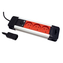 Trojnásobná zásuvka s pojistkou a prodlužovacím kabelem. Se vstupním konektorem IEC320 C14.