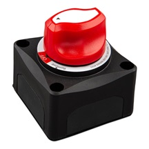 Bateriový odpojovač slouží k odpojování plusového terminálu baterie od DC systému. Knoflík je odnímatelný z bezpečnostních důvodů nebo za účelem přidání izolace. Odpojovač splňuje normu ISO8846 (ochrana proti
