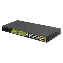 Fast ethernetový rackmount PoE switch bez managementu s Gigabitovými uplink porty a jedním combo SFP je ideální PoE switch do malých firem a větších rodinných domů a je určen pro napájení až 16 zařízení