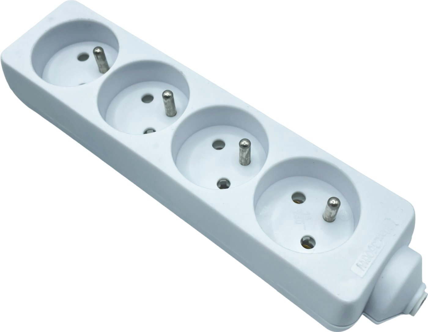 Zásuvková pole se čtyřmi zásuvkami , bílé barvy s možností uchycení vlastního přívodního napájecího kabelu s proudovým omezením 10 A a max. napětím 250 V. Výrobek je vybaven gumovou vývodkou a objímkou