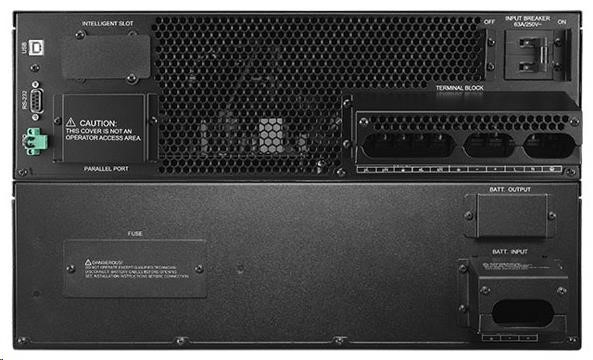 | Dodávka obsahuje | UPS + bateriový modul; kryt Vstup/Výstup Terninal bloku ; uživatelská příručka; telefonní kabel; PowerPanelBusiness Edition software CD; USB kabel typ A+B; kolejnice pro uchycení v racku; konzola pro montáž do racku (2+2); spojovací plát (2); lyžiny (2+2); sériový kabel; napájecí kabel; montážní sada |