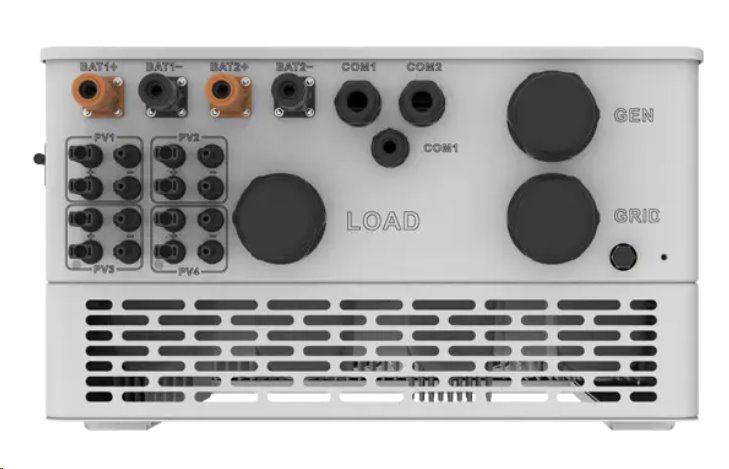 Hybridní 3-fázový invertor pro fotovoltaické systémy, uzpůsobený pro vysokonapěťové baterie s napětím 160 až 800 V, který zajišťuje vyšší účinnost systému díky menšímu odpadnímu teplu. Tento střídač zvládne 3 trackery a celkově až 6 stringů v konfiguraci 2+2+2 s maximálním výkonem 29,9 kW a škálovatelností až do 10 paralelních on-grid a off-grid systémů.