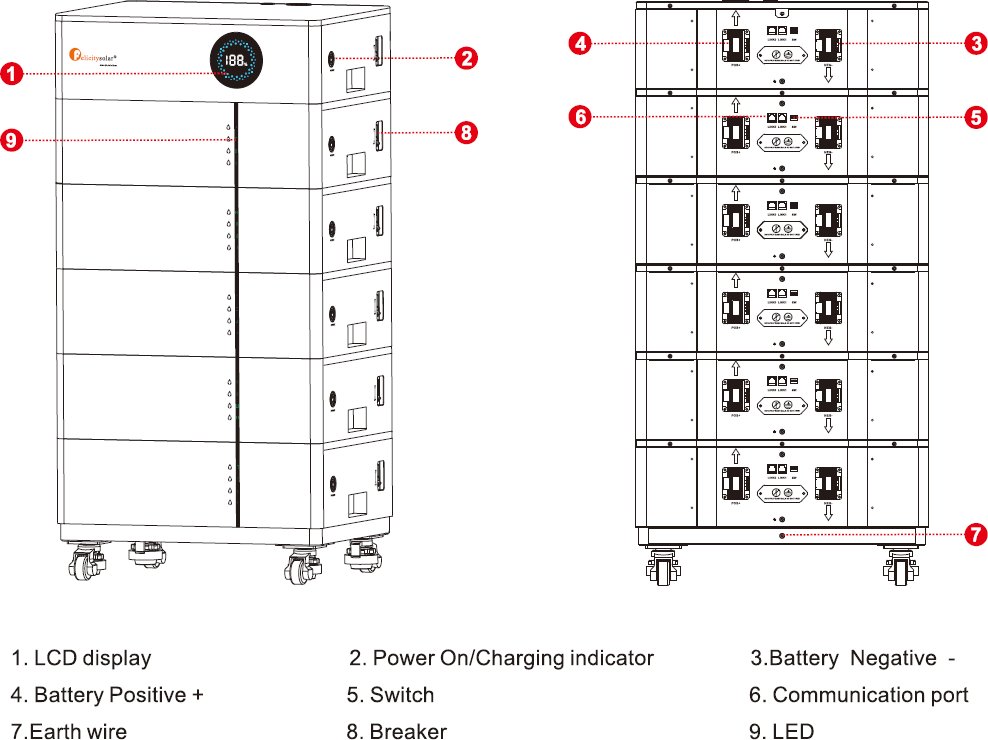 Nízkonapěťová BMS jednotka od výrobce Felicity s integrovanou baterií o kapacitě 5.12 kWh, moderním vzhledem, jednoduchou stohovací instalací, podrobným managementem, vysokou spolehlivostí a možností připojit k BMS dalších 7 bateriových modulů FLS48100-M s celkovou kapacitou až 40,96 kWh. BMS jednotka nabízí provoz při teplotách (0 až 55 °C), stupeň krytí IP21, komunikaci přes CAN/RS485 a jednoduchý informační displej (SOC%, výkon, napětí) s možností sledování stavu každého bateriového modulu zvlášť.