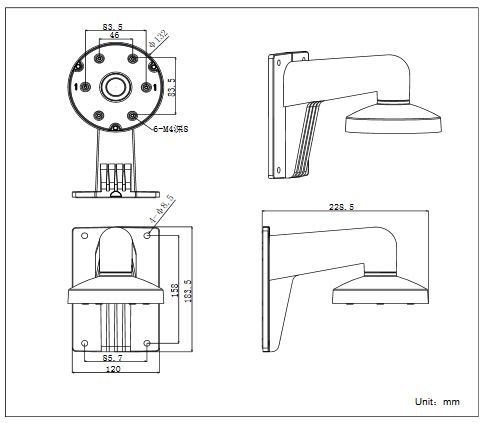 Typ krytu / držáku: Držák pro kameru; Kompatibilita: DS-2CD41xx, DS-2CE56xxT-(A)VFIR