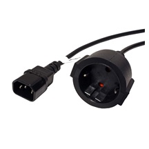 Napájecí kabel pro přechod z přístrojové PC zásuvky na německou zásuvku.Tento kabel je určen pro připojení zařízení s univerzální (CEE 7/7) nebo DE zástrčkou (CEE7/4) do výstupu UPS, nebo rozvodného panelu s přístrojovými zásuvkami IEC320 C13 (lichoběžn...