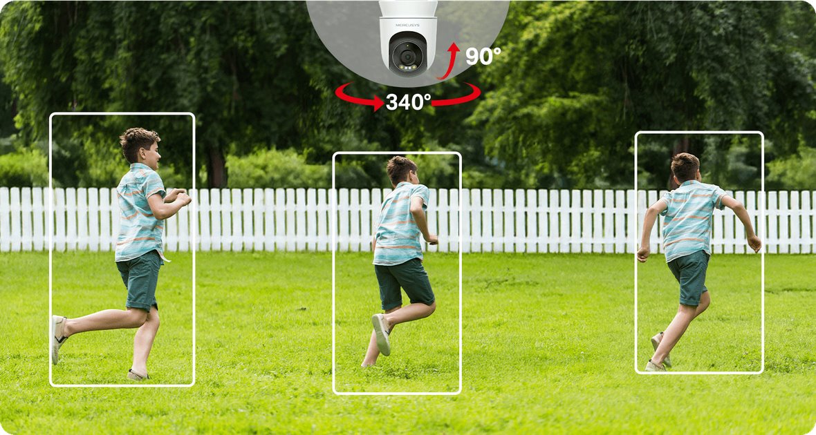 Automatické otáčení a naklánění umožňuje sledovat pohyb ve všech směrech, zatímco inteligentní technologie rozpozná osoby a automaticky je sleduje. Díky přizpůsobitelným zónám aktivity a pokročilé detekci pohybu kamera eliminuje falešné poplachy a upozorní pouze tehdy, když na tom skutečně záleží. V případě skutečného narušení spustí výstražné světlo a sirénu, které účinně odradí nežádoucí návštěvníky.