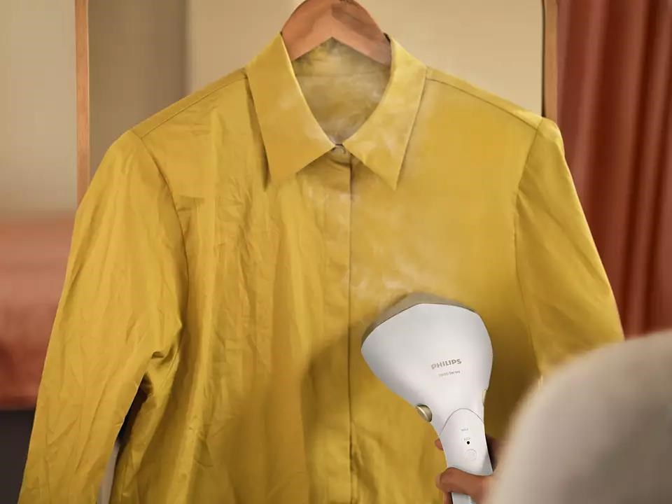 Series 7000 má kompaktní design, díky čemuž je dokonalým řešením na cestách pro napařování oděvů kdykoli a kdekoli. Není třeba žehlicí prkno.