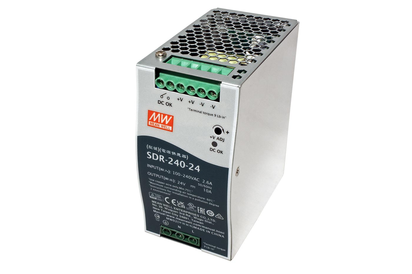Průmyslový napájecí zdroj na DIN lištu o výkonu 119 W a výstupním napětí 54,5 V s funkcí nabíjení olověných/gelových akumulátorů a vzdáleným managementem. Zabudovaný odpojovač zabraňuje hlubokému vybití a