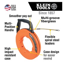 Protahovací pero Klein Tools, v pouzdře, drážkované 30,5m průměr 4,8mm zakončení s ocelovou spirálou