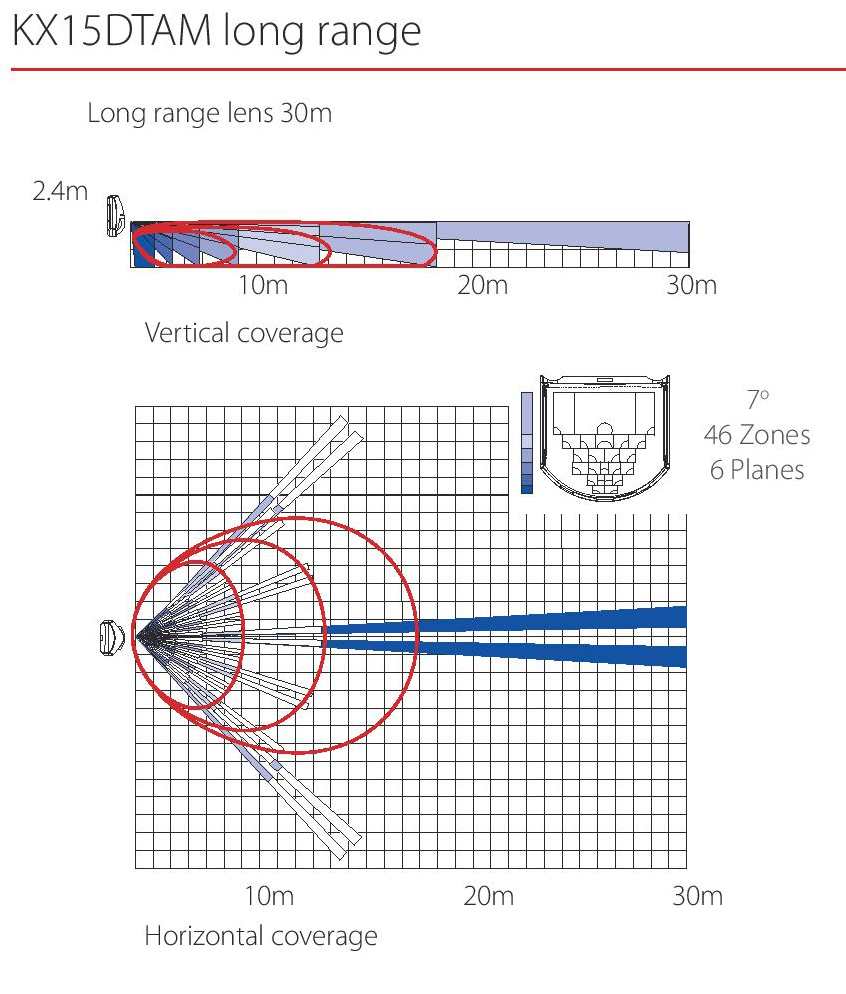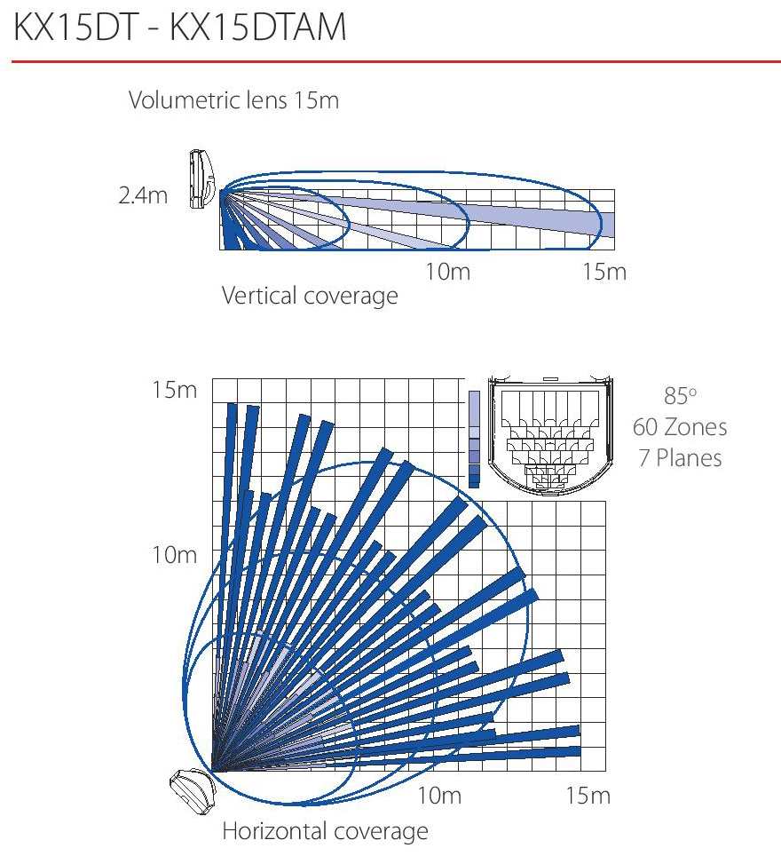 - Dosah a úhel detekce - 15m a 85°(60 zón 6 vrstev) pro vestavěnou čočku