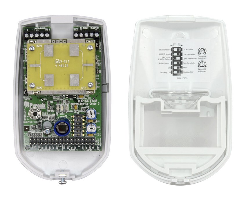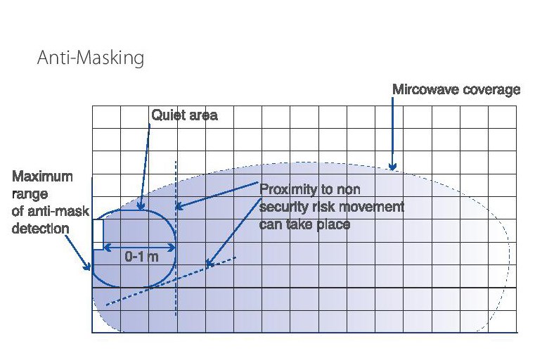 vnitřní duální Anti-Masking snímač (PIR + MW) s technologií Blue Wave, dosah 15 m