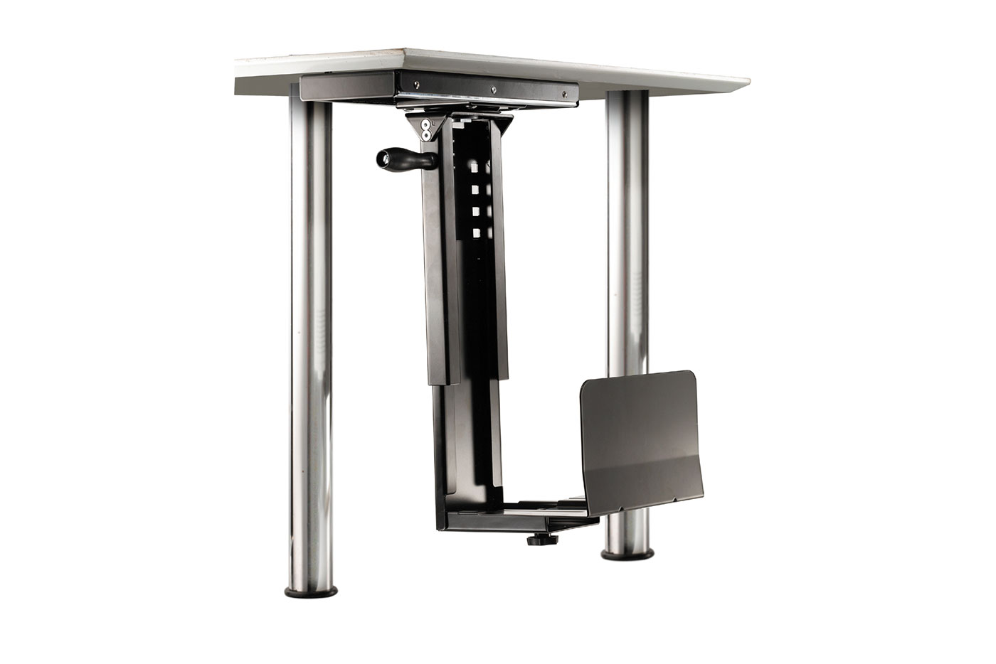 Držák na počítač montovaný pod desku stolu.