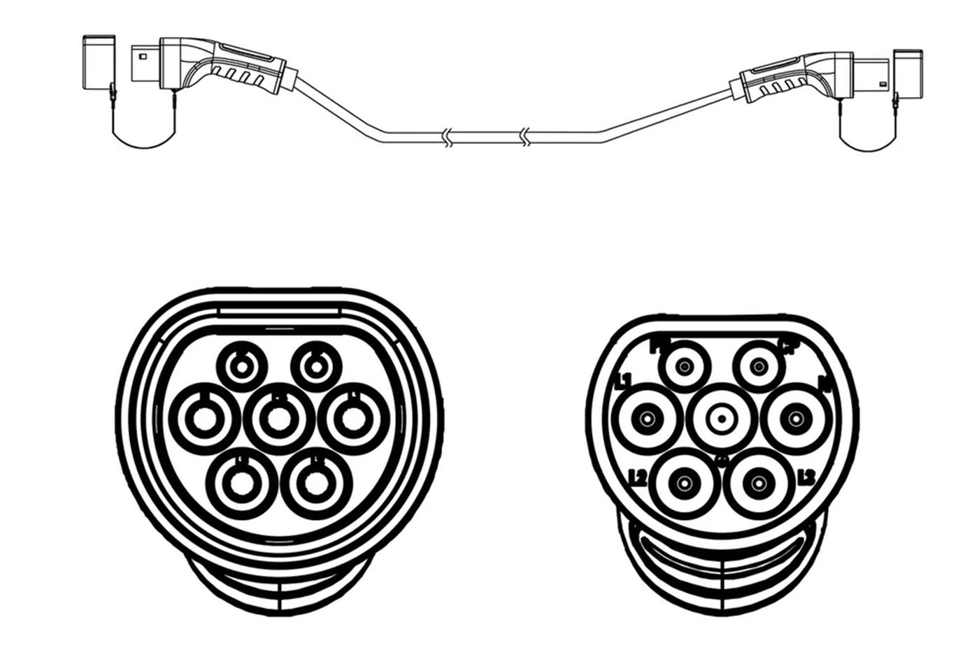 | Použití | Pro nabíjení elektromobilu z nabíječky (kabel mode 3) přes konektor Typ 2. S ochrannými gumovými krytkami na koncovkách. |