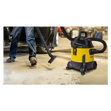 • Ideální pro použití v interiéru i exteriéru: 1) v domácnosti 2) v dílně 3) v garáži a autě 4) na stavbě 5) na zahradě 6) na chatě a chalupě • 4 funkce v 1: 1) Bezsáčkové suché vysávání 2) Sáčkové suché vysávání 3) Mokré vysávání 4) Fukar • Suché vysávaní vhodné na prach, hobliny, piliny, písek, hlína, suť, střepy atp. • Mokré vysávání vhodné na nehořlavé kapaliny, vodu z akvária, vodu po úklidu, dna nádrží, nehody s vodou (vytečená pračka, myčka), louže atp. • Funkce fukaru na listí a prach nebo nečistoty z nepřístupných míst • Sběrná nádoba o objemu 20 litrů • Výkonný a energeticky úsporný motor (spotřeba pouze 1000 W) • Antialergický omyvatelný HEPA filtr třídy H10: 1) Průměr 18 cm 2) Obvod 58 cm 3) Účinná výška 14,5 cm • Extra velká aktivní plocha HEPA filtru (841 cm2) • Síťovaná ocelová vnitřní výztuž HEPA filtru s galvanizovanou úpravou pro zvýšenou odolnost proti vodě a vlhkosti a delší životnost • Akční rádius: 8,5 metru • Dostupná výška pro vysávaní bez nasazené hubice: 2,8 m • Dvě hubice součástí balení: 1) Podlahová hubice 2) Štěrbinová hubice na vysávání nepřístupných a úzkých míst, na čalounění a pro zesílení účinku fukaru • Vyjímatelná kartáčová část podlahové hubice pro snadné čištění • Dvě vnitřní části podlahové hubice: 1) Kartáč v přední části pro zachycení suchých nečistot 2) Gumová stěrka v zadní části pro zachycení vody • 360° kloub podlahové hubice pro maximální flexibilitu a horizontální vysávání ve výškách • Extra velký hlavní vypínač pro snadné zapnutí nebo vypnutí vysavače i v pracovních nebo zimních rukavicích • Tělo z extra silného polypropylenu se zvýšenou odolností při nárazu nebo pádu vysavače • Dva vodiče pro namotání síťového kabelu kolem hlavy vysavače • Masivní rukojeť pro snadnou manipulaci a přenášení • Délka napájecího kabelu: 6 m • Délka flexibilní hadice: 1,5 m • Délka trubek ve složeném stavu: 96 cm • Akční rádius: 8,5 metru • Dostupná výška pro vysávaní bez nasazené hubice: 2,8 m • Snadné vylévání vody ze sběrné nádoby (motor i filtr jsou integrované v horní odnímatelné části) • Integrované držáky v pojezdové části na rozložené trubky a štěrbinovou hubici • Papírový prachový sáček na jednorázové použití součástí balení • Dvojitá ochrana: 1) proti přehřátí 2) proti zaplavení motoru • 4 otočná kolečka pro snadnou manipulaci a pojezd • Evropské certifikace LVD, EMC, RoHS • Hlučnost: 72 dB • Jmenovitý příkon: 1000 W • Jmenovité napětí: AC 220-240 V • Jmenovitý kmitočet: 50/60 Hz • Rozměry (š × h × v): 30,5 × 30,5 × 53 cm • Hmotnost: 4,76 gOBSAH BALENÍ: