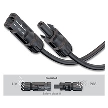 Jednoduchý a bezpečný MC4 male krimpovací konektor určený pro spojení solárních panelů a měničů, do kterého lze zapojit kabel o průřezu 4 až 6 mm 2 . Díky venkovnímu provedení je konektor odolný také vůči