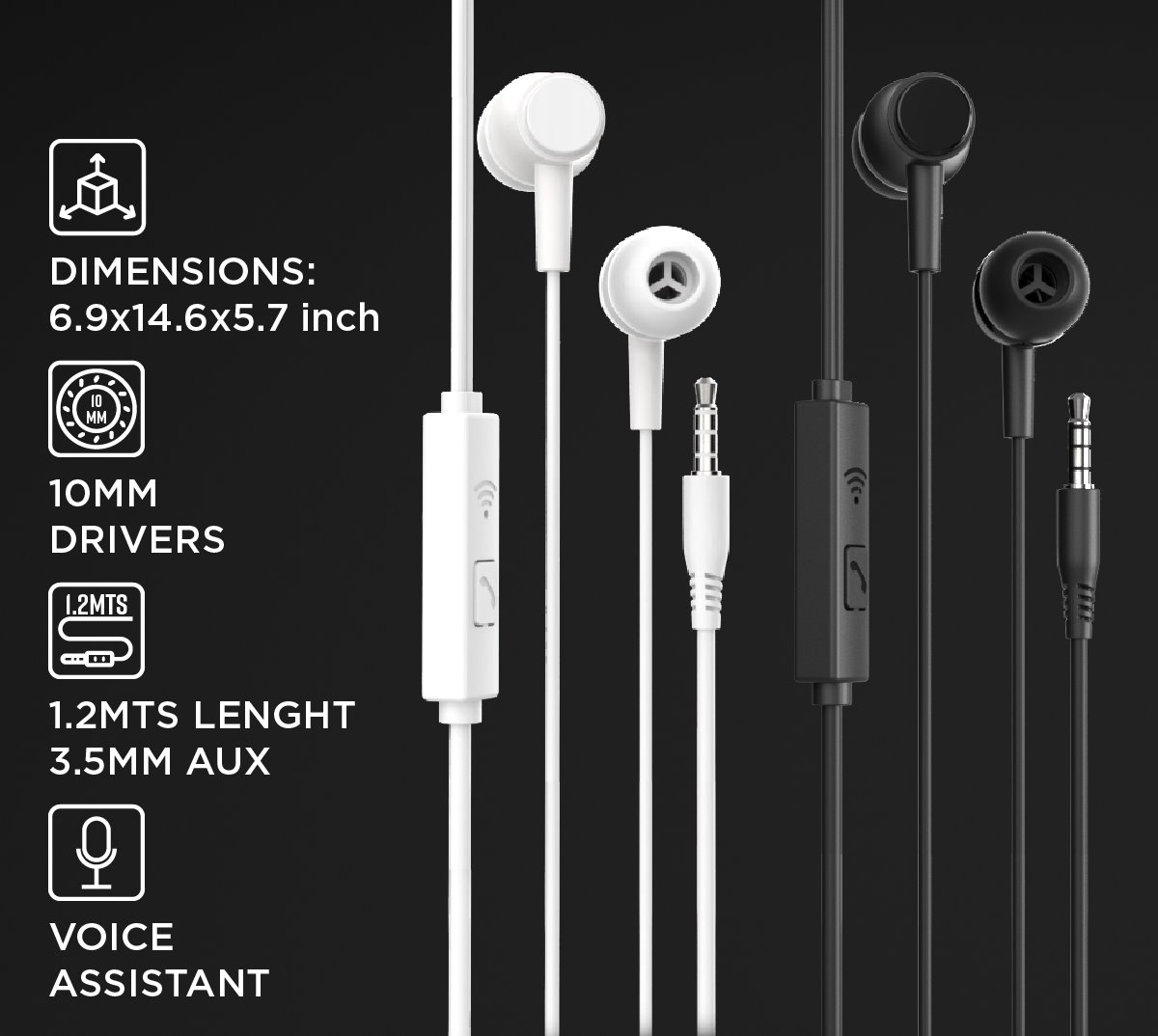 Stylová špuntová sluchátka s mikrofonem v bílé barvě nabízejí kvalitní poslech díky 10mm měničům a frekvenčnímu rozsahu 20–20 000 Hz. Připojení zajišťuje 1,2m kabel s 3,5mm jackem, který je kompatibilní s většinou zařízení. Ovládací tlačítko na kabelu umožňuje pohodlné přijetí hovoru či ovládání hudby. Sluchátka nabídnou stabilní výkon v každodenním provozu doma i na cestách.