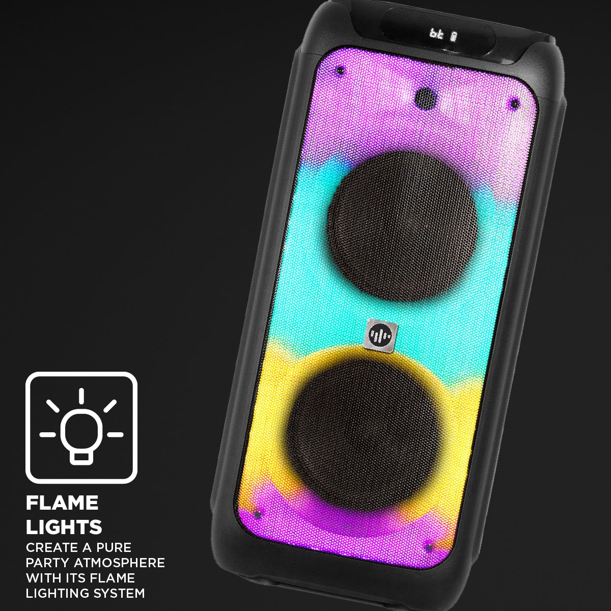Stylový a výkonný Bluetooth reproduktor značky Stromberg s výkonem 80 W rozzáří každou párty díky integrovaným RGB LED světlům a dodávanému mikrofonu. Umožňuje připojení dalšího zařízení přes Stromberg