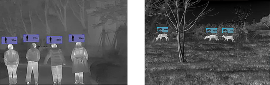 Díky inteligentnímu algoritmu rozpoznávání obrazu AI Vám umožňuje dálkoměr rozpoznat a změřit vzdálenost několika objektů najednou i v úplné tmě.
