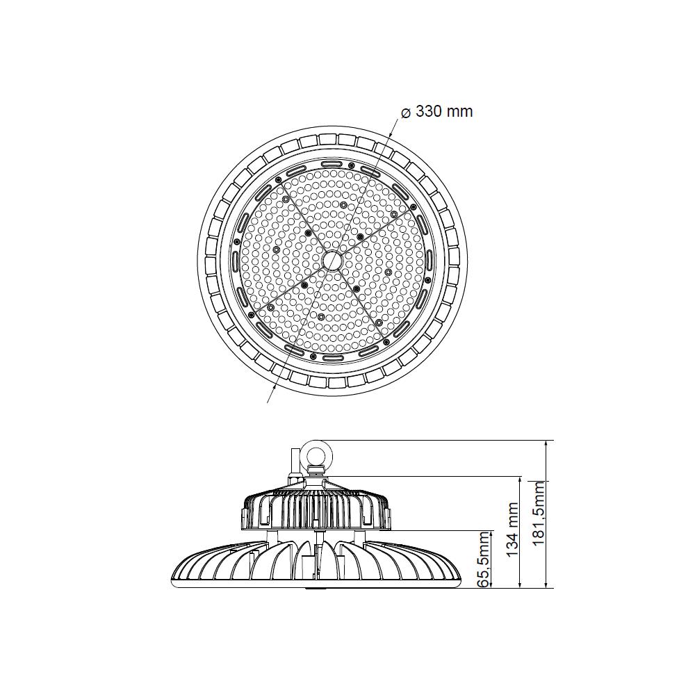 Typ Průmyslového osvětlení: High Bay; Teplota chromatičnosti (CCT): 4000K; Odběr: 100W; Osvětlení: 14000lm; Úhel osvitu: 120°