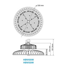 Typ Průmyslového osvětlení: High Bay; Teplota chromatičnosti (CCT): 4000K; Odběr: 150W; Osvětlení: 21000lm; Úhel osvitu: 90°
