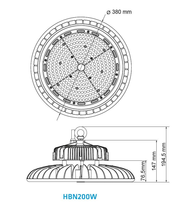 Typ Průmyslového osvětlení: High Bay; Teplota chromatičnosti (CCT): 4000K; Odběr: 200W; Osvětlení: 28000lm; Úhel osvitu: 120°