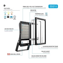 Typ Průmyslového osvětlení: Reflektory; Teplota chromatičnosti (CCT): 4000K; Odběr: 200W; Osvětlení: 26000lm; Úhel osvitu: 120°