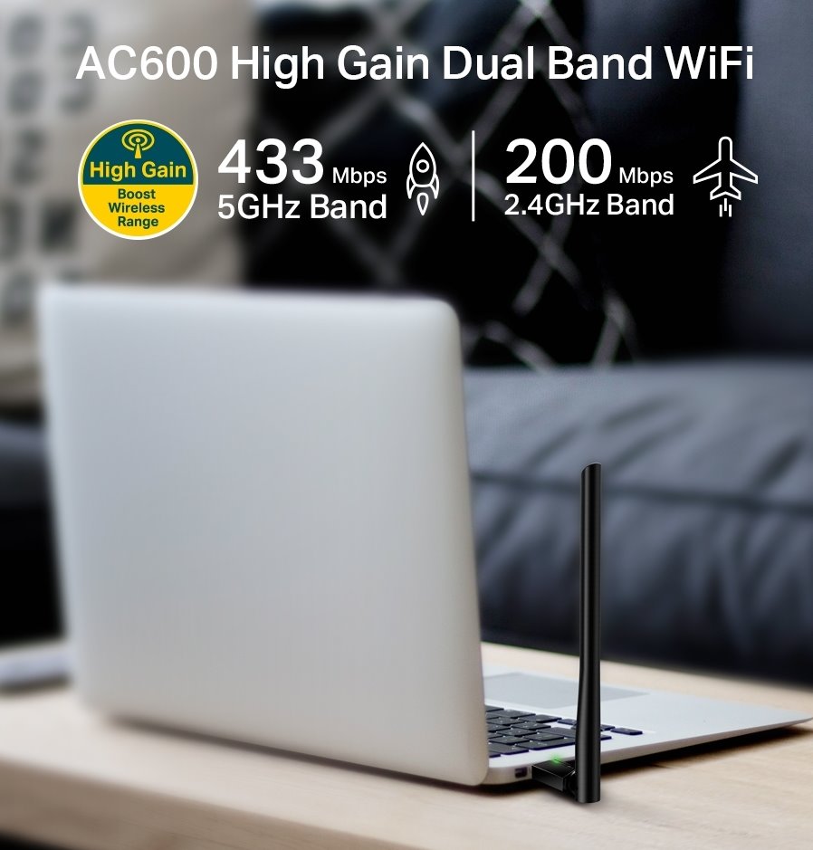 Archer T2U Plus přijímá signály Wi-Fi ve dvou samostatných pásmech. Podpora 256QAM zvyšuje datovou rychlost v pásmu 2,4 GHz ze 150 Mb/s na 200 Mb/s, což přináší o 33 % rychlejší výkon. Rychlost 200 Mb/s v pásmu 2,4 GHz je ideální pro běžné použití, jako je například surfování po webu se staršími zařízeními. Rychlost 433 Mb/s v pásmu 5 GHz je ideální pro streaming v HD a hraní online bez zpoždění.